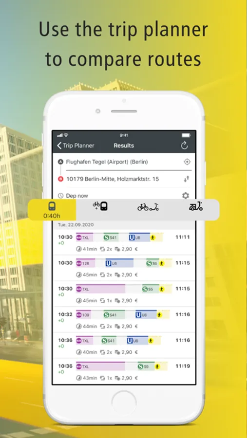 With BVG Fahrinfo you are not limited to public transport options only but have multiple options to choose from.