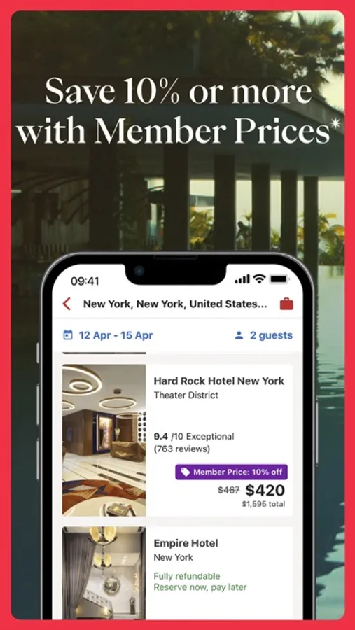 - Access Member Prices* of 10% or more on over 100,000 hotels worldwide.
