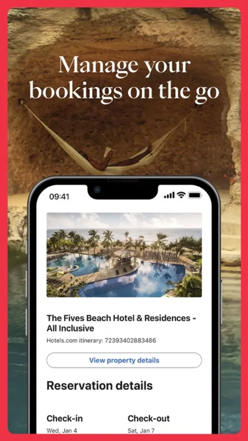 - Save your confirmation and access your hotel or vacation rental booking details anytime – even offline.