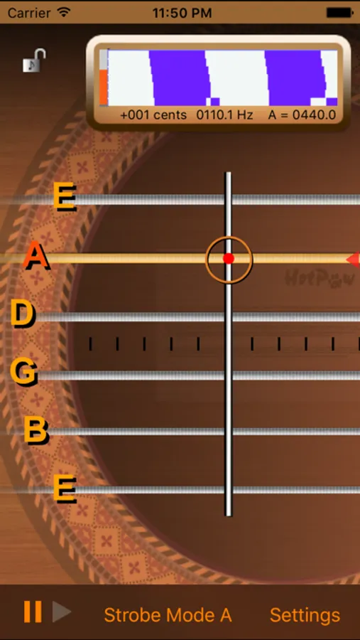 Professional musicians prefer strobe tuners for tuning speed and accuracy. The HotPaw inTuna Strobe Guitar Tuner allows you to quickly and accurately tune your guitar via unique, responsive, and high contrast visual displays. Optional multi-stobe tuning mode for simultaneous display of a strobe for each string... fast and accurate even in noisy environments.