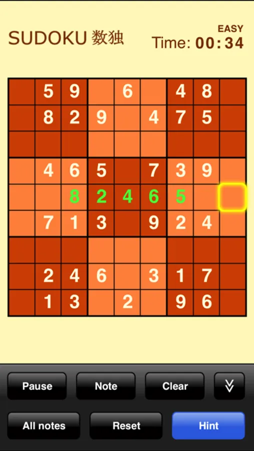 • "ALL notes": tap the "All notes" button on to show all the possible answers for each square. Tap the "All notes" button off to remove the notes.