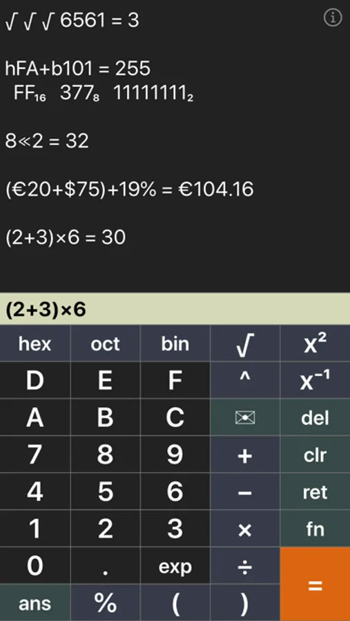 - decimal, hexadecimal, binary and octal conversion and calculations