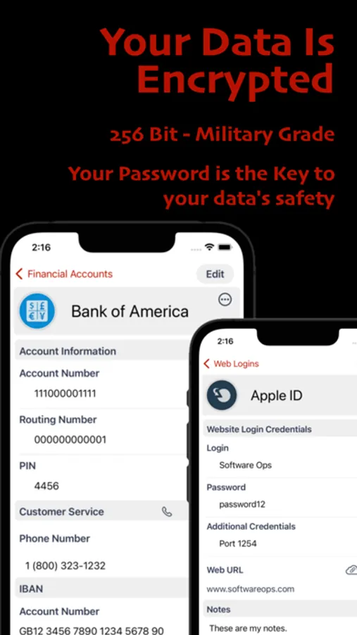ID Lock® securely stores all of your important information, including web site passwords, credit card numbers, bank account information, and more. Our advanced encryption technology includes password protection, powerful 256-bit AES encryption, and an additional layer of keychain security that other apps don't have. Never worry about loss or theft again.