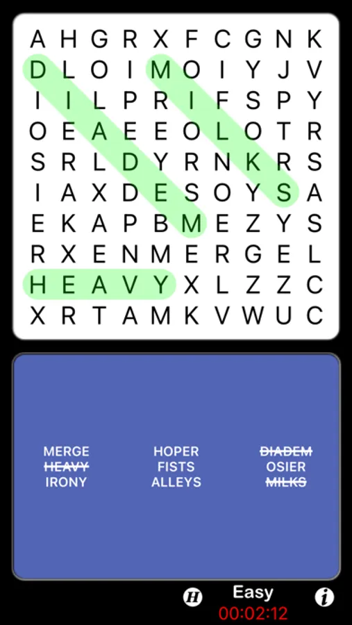- Three difficulty levels: Easy, Medium and Hard.