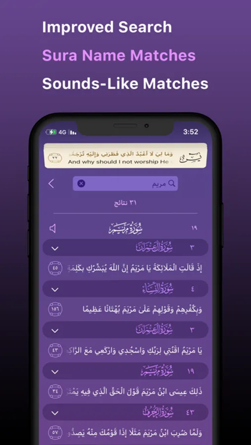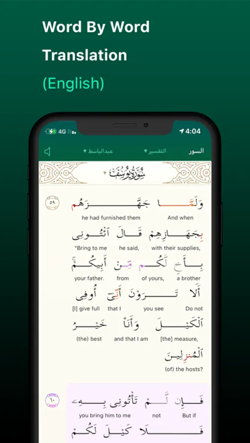 * Advanced audio repeat options to help with memorization: repeat a single verse multiple times, repeat on reaching the end of a surah or select a range of verses to loop over