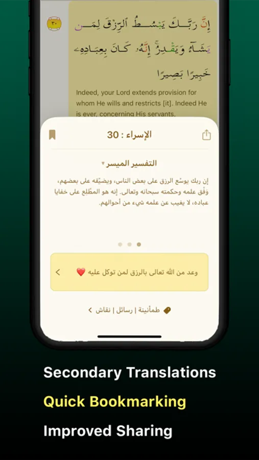 * Automatic Last Reading Sessions. One-tap access to all of the verses and surahs you've been reading, directly from the home screen.