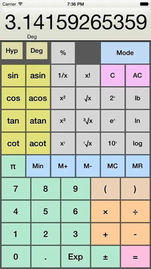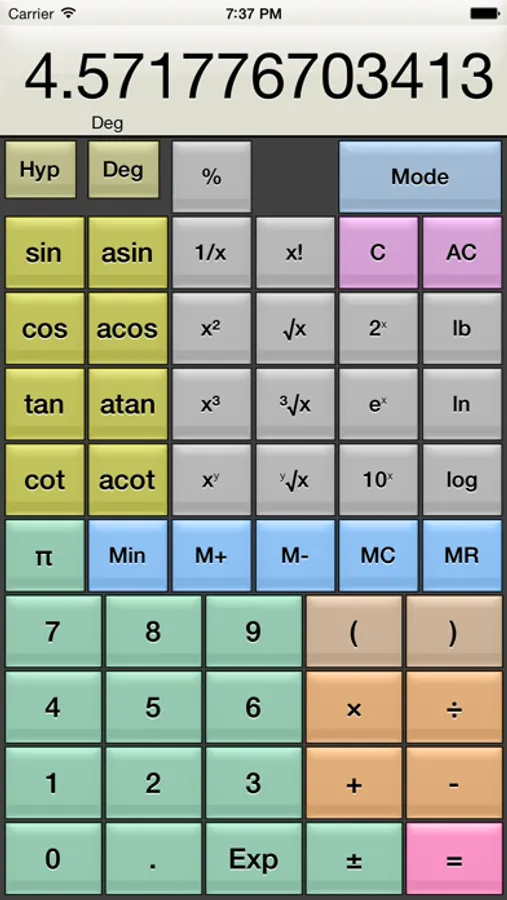 - The scientific mode offers all the usual functions and operations like the basic arithmetical operations, power, logarithm, roots, trigonometry etc.