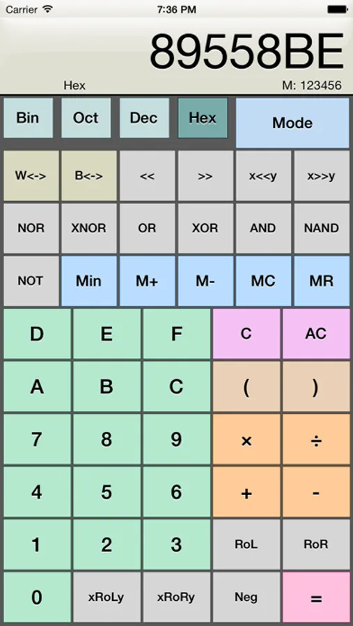 - The bit/integer mode offers logical operations (AND, OR, XOR, >>, etc.) on bit level. All values can be displayed as binary, octal, decimal or hexadecimal numbers. Calculations can be done in 8, 16 32 or 64 bits.