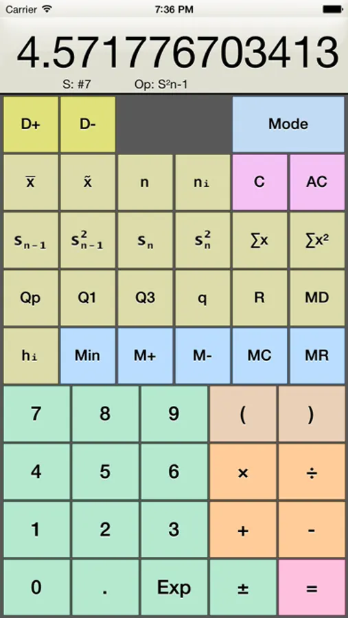 - In the statistics mode you can create a sample by adding several values and then calculate mean, median, quantil values, variance, standard deviation, range etc.