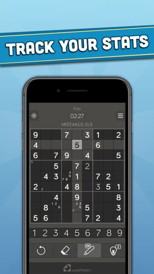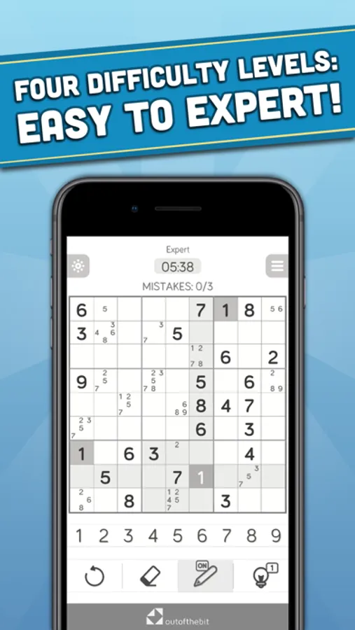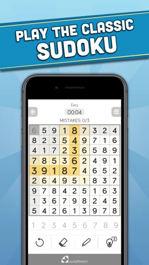 Sudoku will tease your brain, challenge you or allow you to unwind and relax. With the easiest interface, it will give you the perfect Sudoku experience. Big numbers, a straight-forward toolbar for the actions you will use the most, plus all the options to personalise your game. Choose your level, from easy to expert, have your mistakes counted and duplicated numbers highlighted or choose the “Pro Mode” to have no help in solving your puzzle. Get hints whenever you are stuck and “pencil in” your notes or erase entries.