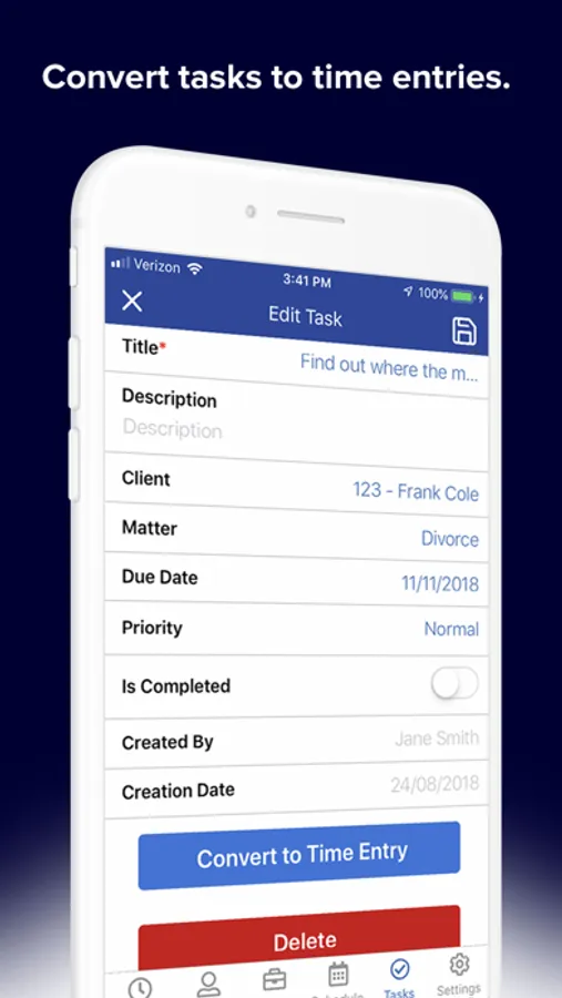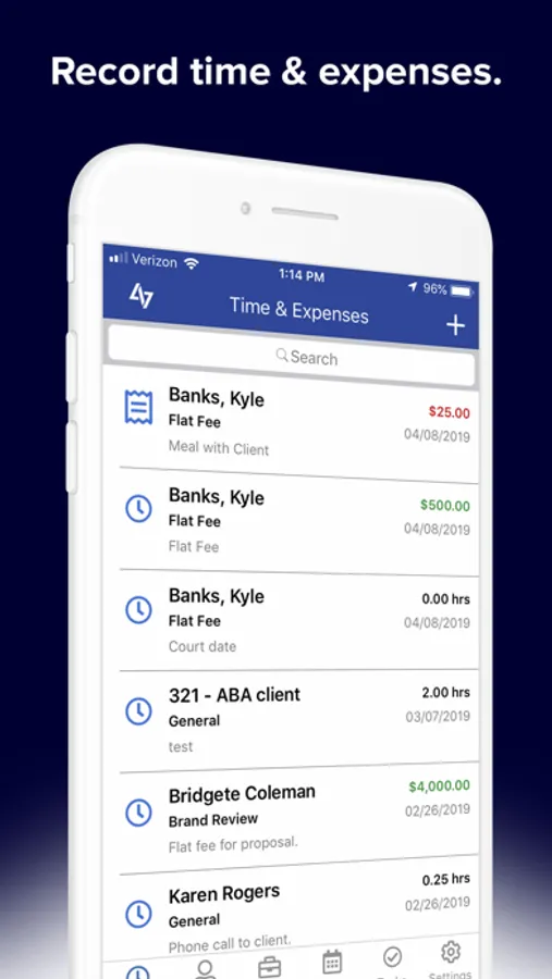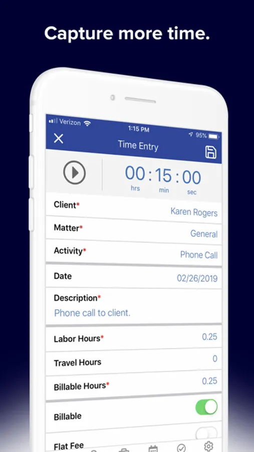 • Never miss another billable minute! Track your billable and non-billable work in real-time with our one-tap timer.