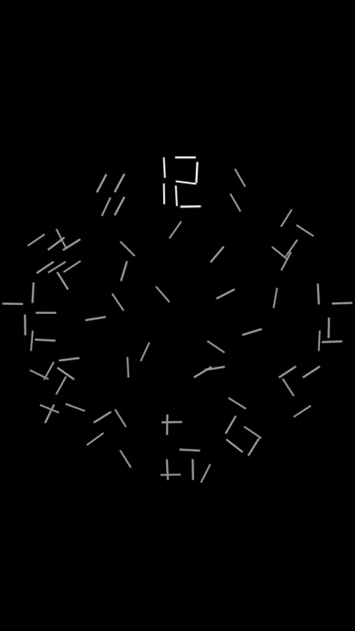 This is a screen full of slowly rotating clock hands which, at a first glance, look randomly distributed. However, they are cleverly arranged such that for every full hour some of the hands line up to display the hour's digit.