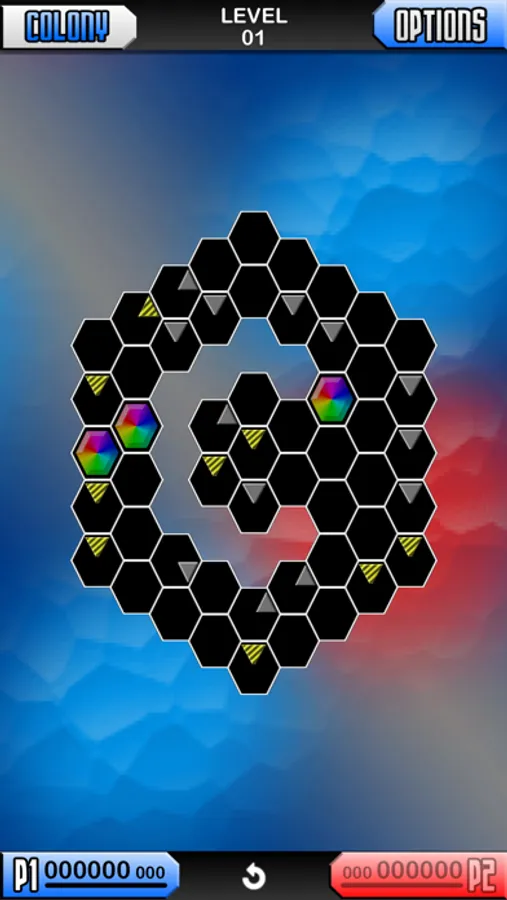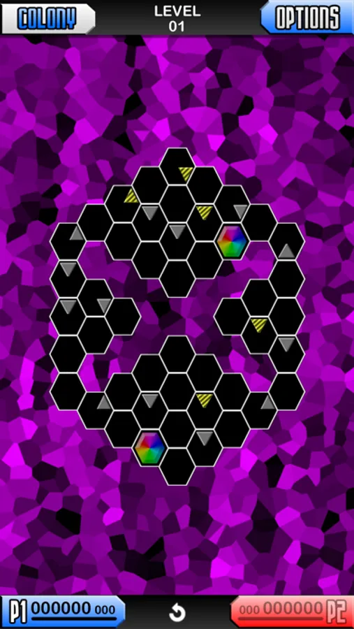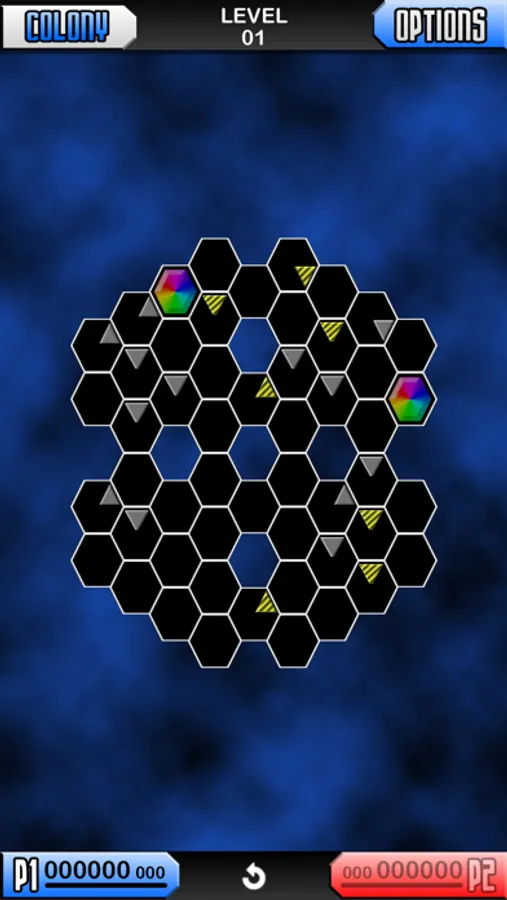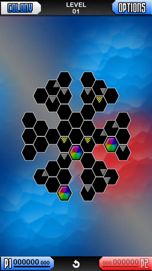 50 levels of addictive puzzling strategy fun! Play against your device or another player, taking it in turns to place triangular pieces on the board to fill up hexagons. When a hexagon has as many pieces within it as it has hexagons touching it, it explodes and sends its pieces to those hexagons, 'colonising' them and making them your own.