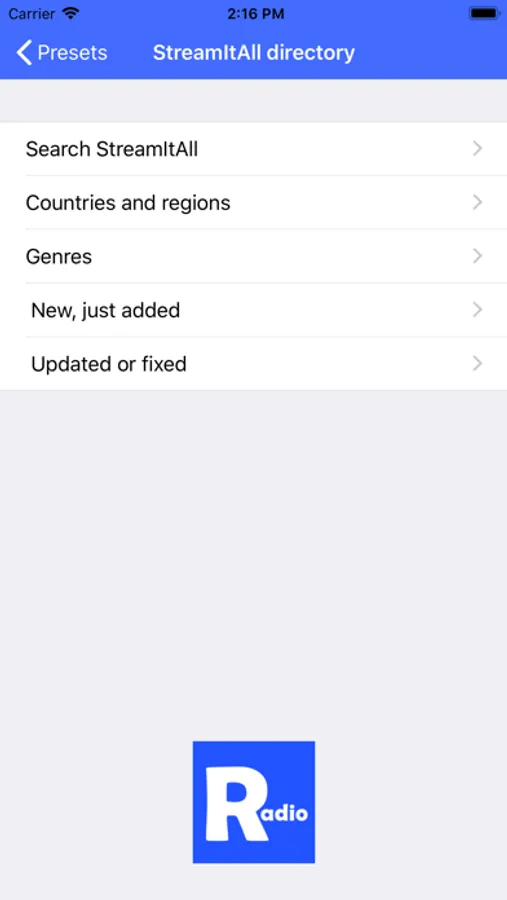 Easy setup: quick start with 25 popular radio stations from your country and customize it to your preferences by adding stations from the SHOUTcast directory (50000 stations) or our own hand picked StreamItAll directory (2000 stations). You can also manually add your favorite stream or ask us to add a station by requesting is via Twitter of Facebook!