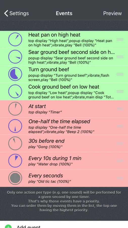 Timer allows to define multiple special events that will be triggered when the timer is running.