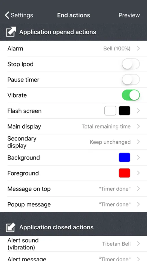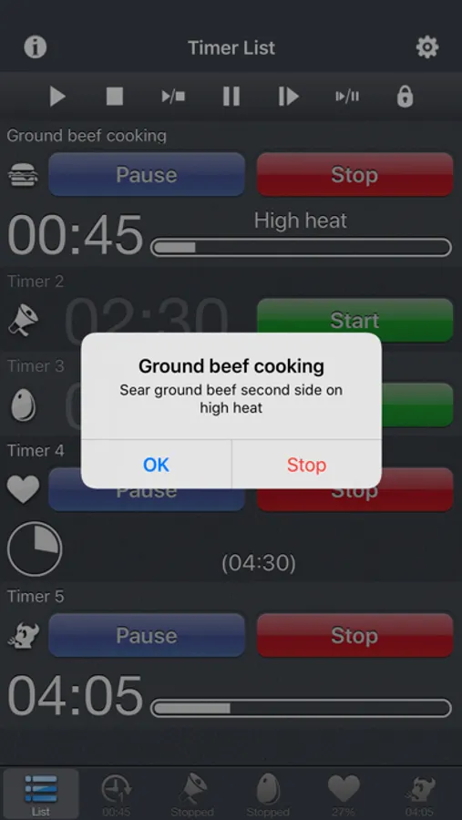- The timer can be looped forever or for a specific number (the number of loops being displayed).