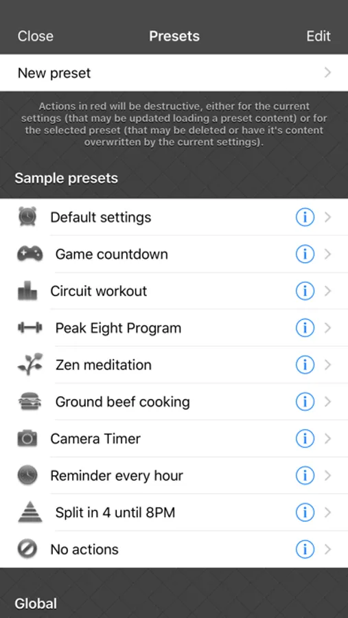 - The timer start can be delayed, allowing to have a short preparation time before the timer is automatically started.