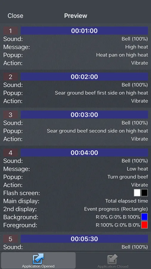 Sounds, messages, photos, screen flashing and more actions can be triggered at any time thanks to a complex time scheduling system (that can be easily previewed).