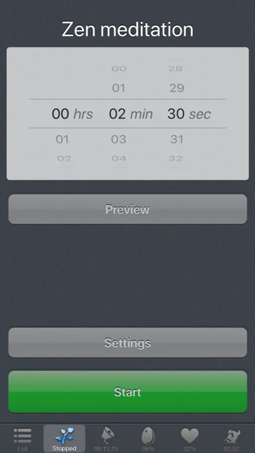 * "While in background, plays a Tibetan bell sound 4 times (every 25%) until 6PM"