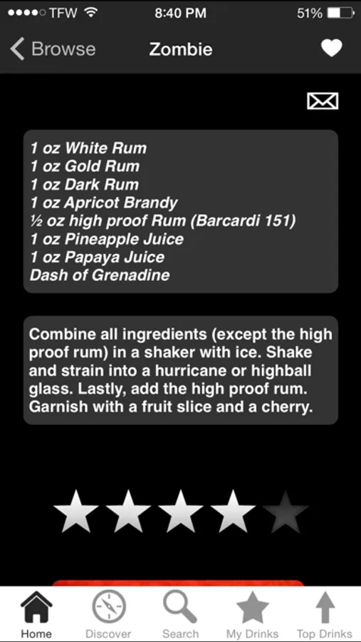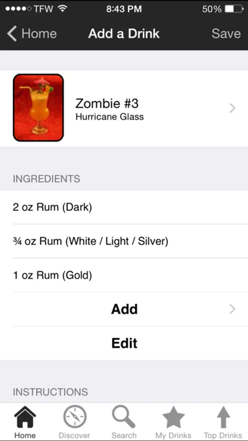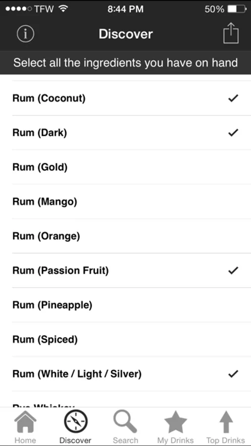 - 'Discover' shows you the drinks you can make with what you have on hand.