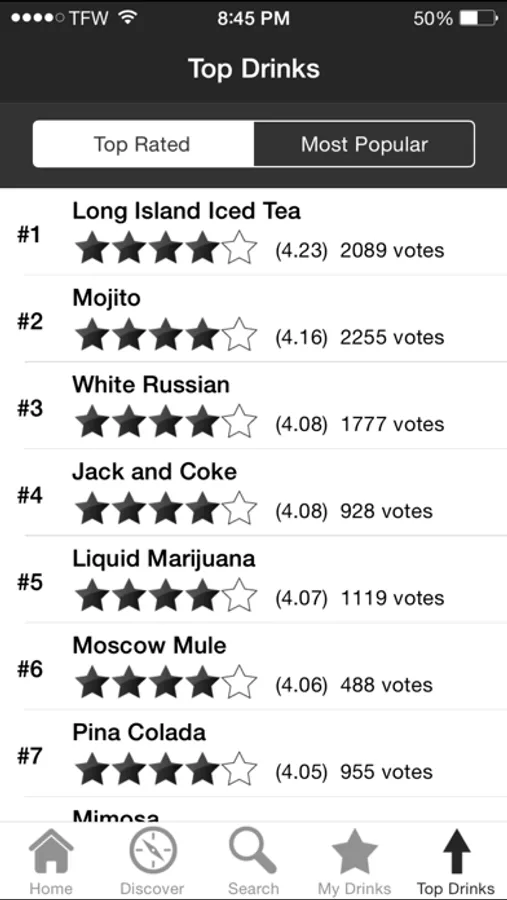 - Rate drinks and view the top rated & most popular drinks as determined by other iBartender users.