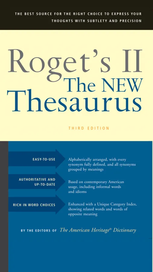 Roget's II: The New Thesaurus is Houghton Mifflin's easy to use, accurate, and authoritative English thesaurus. This essential reference offers users the resources of the English language to enhance the expressiveness and accuracy of their communications. Roget's II: The New Thesaurus combines the most useful features of a thesaurus and a dictionary; each entry contains a short definition as well as a comprehensive list of synonyms for the headword. This up-to-date database also features extensive, and useful, cross-references.