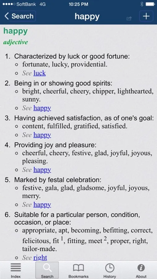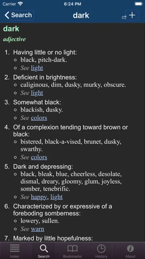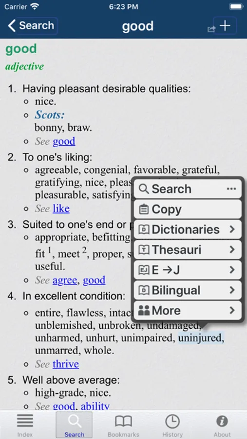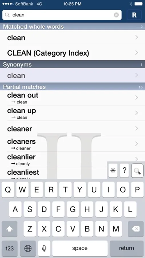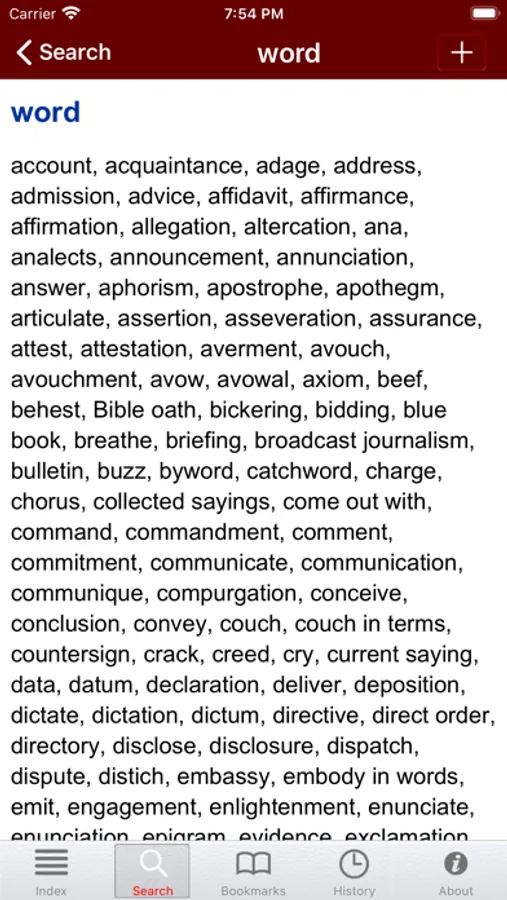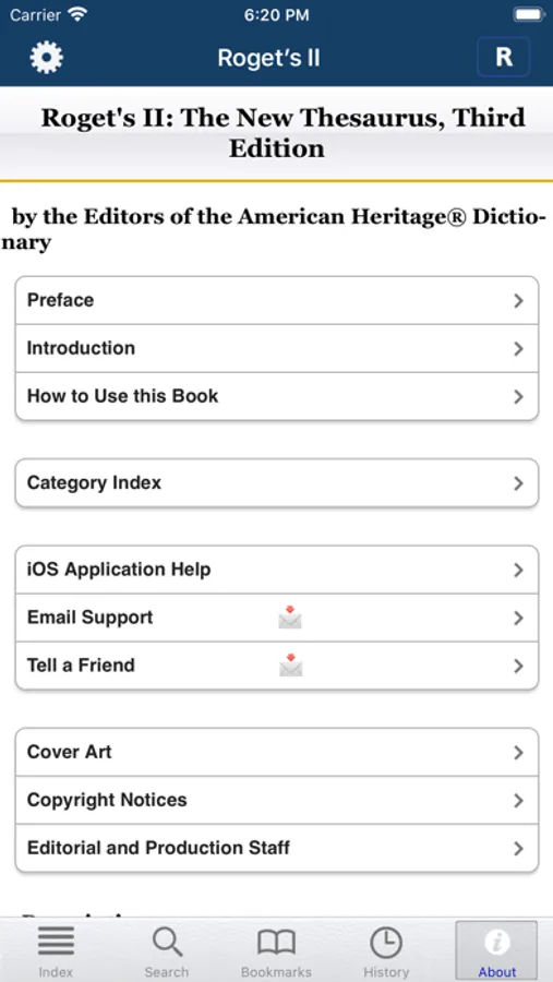 This application brings the full "Roget's II: The New Thesaurus" to your fingertips.