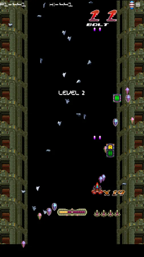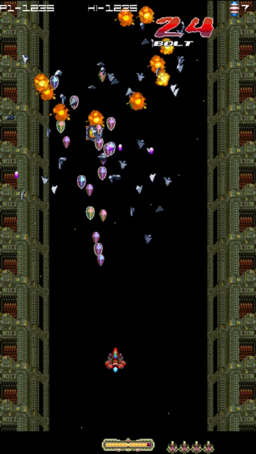 Vertical Shootem up with many options and pixel art graphics and sounds FX.