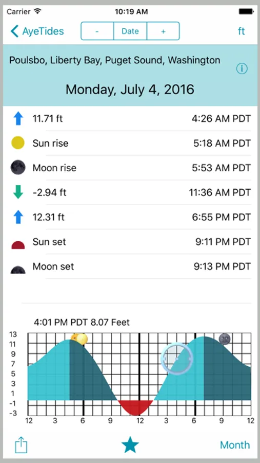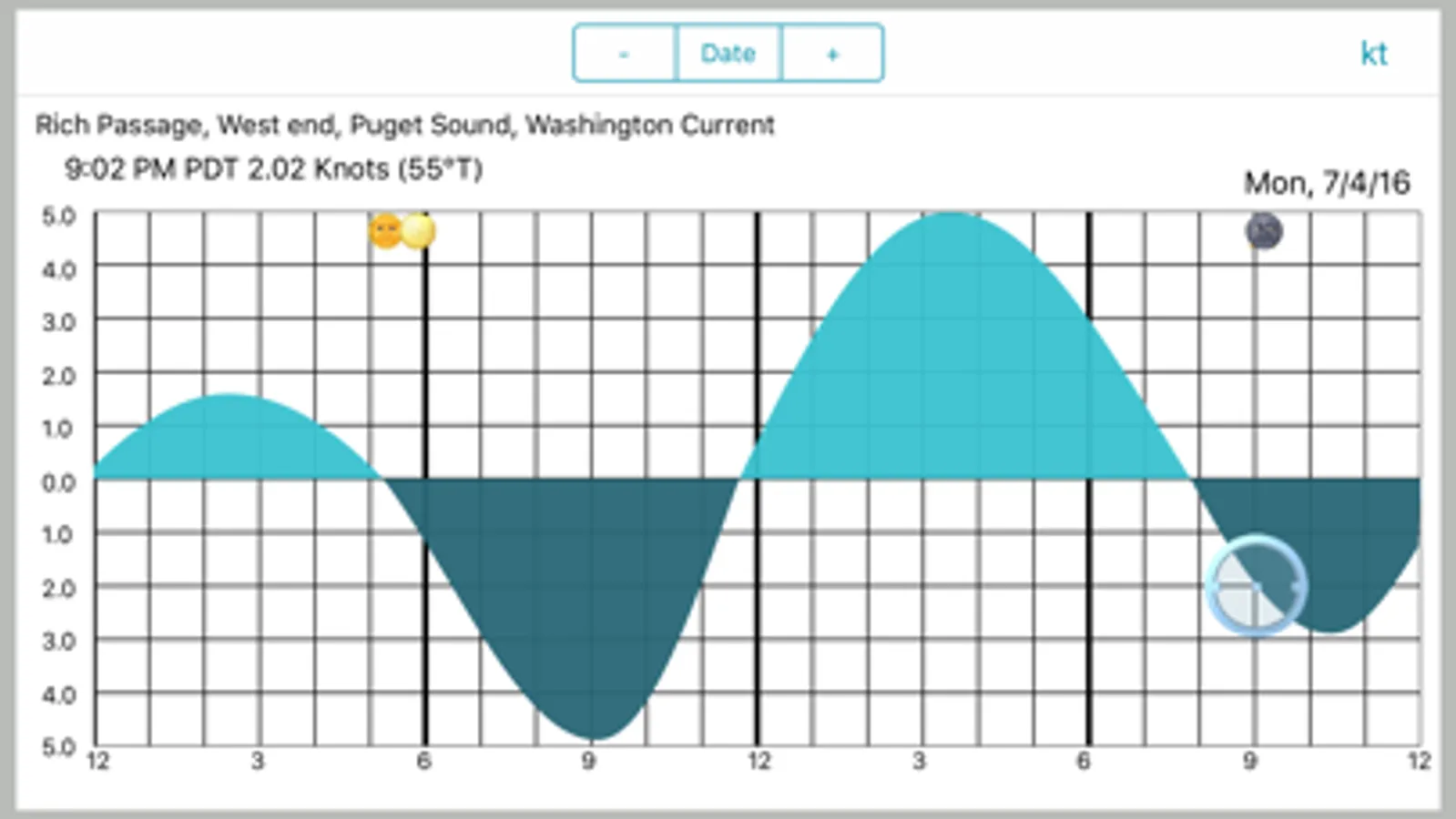 You can see the day’s events in tabular form, or you can rotate the phone for an interactive graph that shows you the tide’s value at any point during the day. You can find a station on a map, by name, or based on your current location.