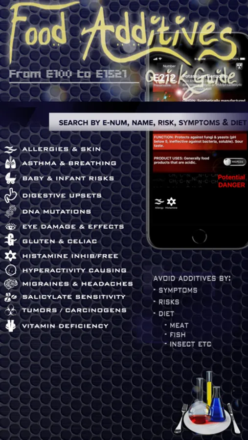 Food additives may have revolutionized the mass production of the food that we consume, but at what cost to your health? Fully searchable, this app lets you quickly & easily access the general information of 450+ food additives (no internet connection required!).
