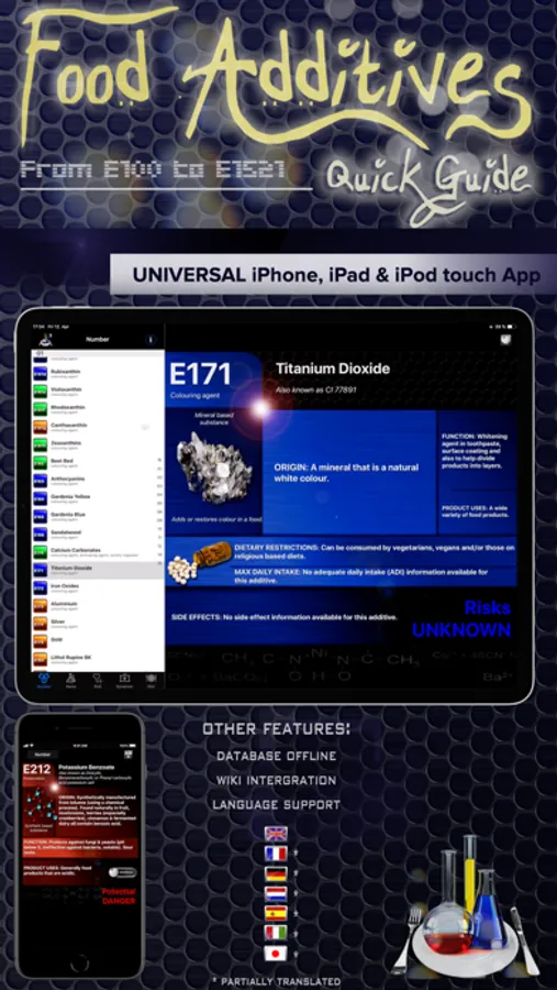 ■ Wikipedia integration for even more detail. Each additive conveniently embeds Wikipedia within the app (internet required for this functionality)