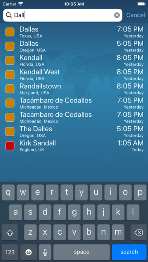 Alternatively, select the cities you wish to communicate between, then tap the "Suggest Time" button for TimeScroller to automatically suggest a time. The display will also update showing just those cities, making the choice of a time even easier.