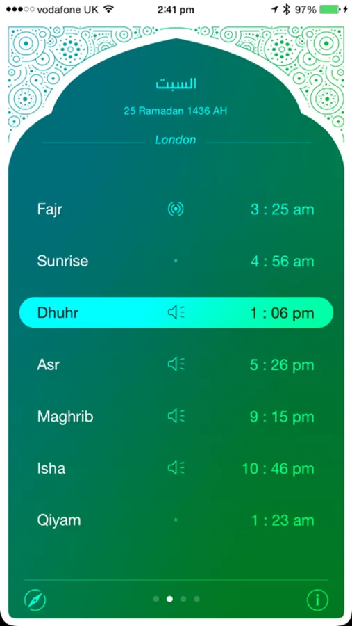 * Prayer Alerts will ONLY alert you with an initial Takbir. The full azan (and its length) is NOT supported by the iOS alert mechanism as there is a maximum limit of 30 seconds of audio playback.