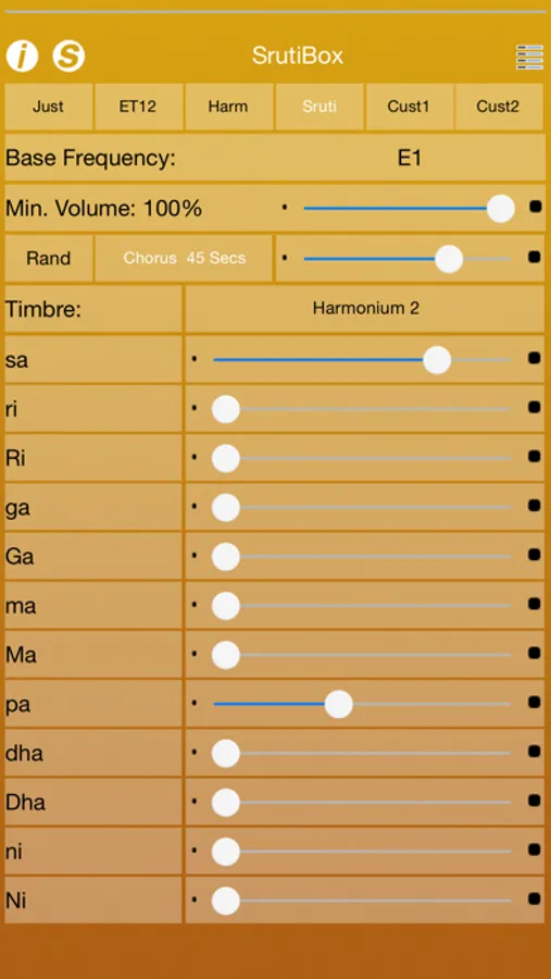 SrutiBox simulates an Indian harmonium, used as a base tone in Indian music and in spiritual practices of chanting and droning.
