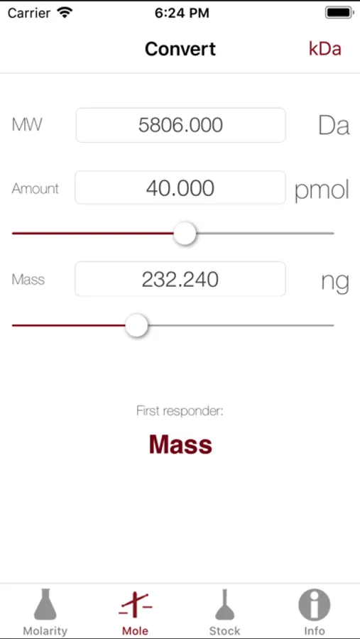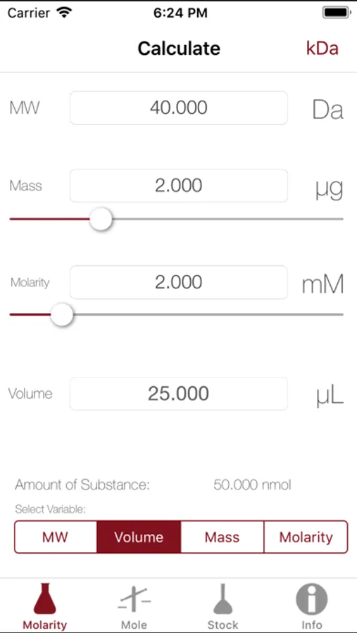 - Switch the molecular weight between Dalton and kilo-Daltons