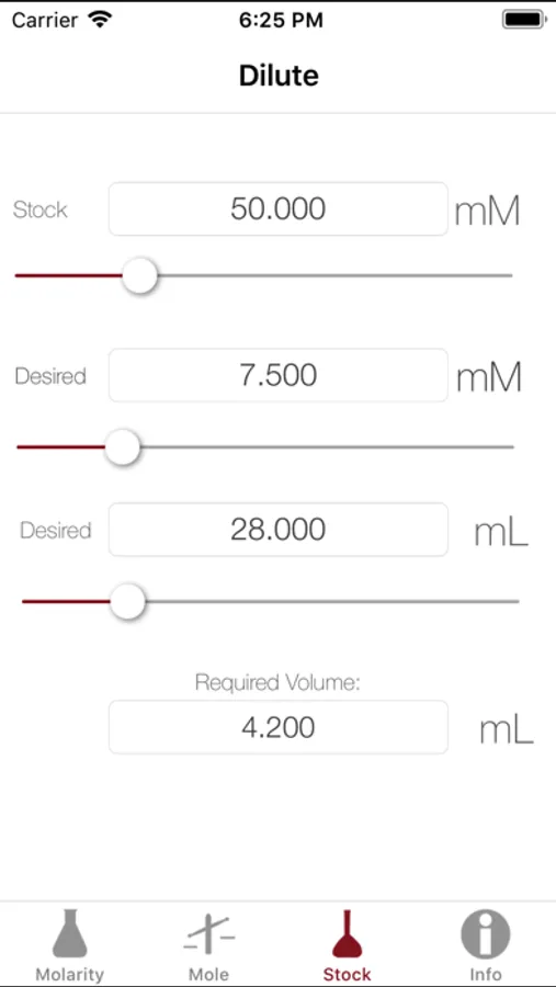 The Laboratory Calculator is an utility to calculate the molarity, to convert gram and mole and to compute dilutions of stock solutions.