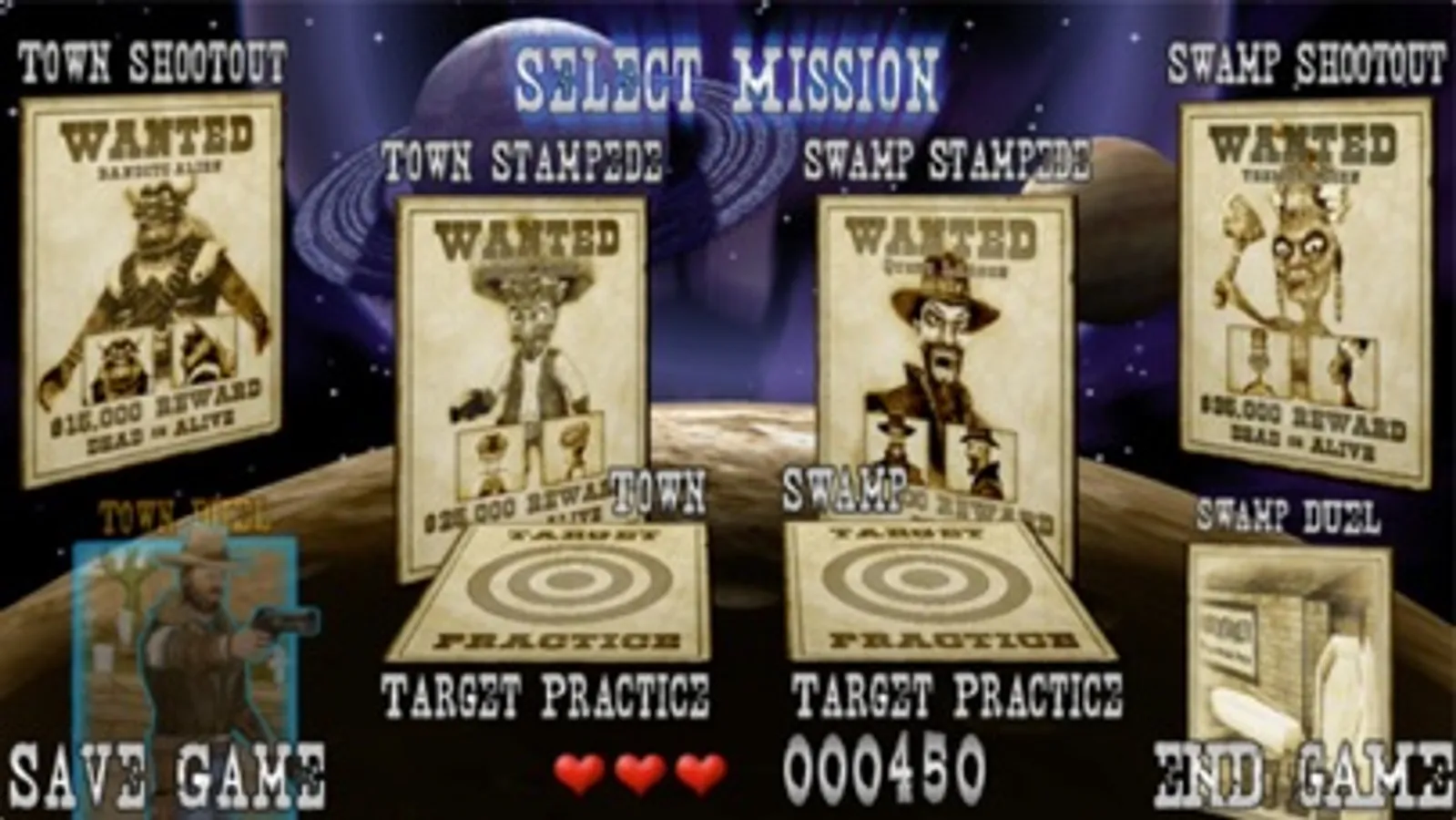 You'll test your reflexes in Duels, see if you can outrun a stampeding herd of Kanga-Cows (half kangaroo, half cow), hunt down alien bandits in gun battles, and blast catapulted critters out of the sky in the Shooting Gallery!