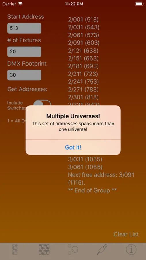 • Determine the addresses of multiple DMX devices with the same footprint at once, even across universes.
