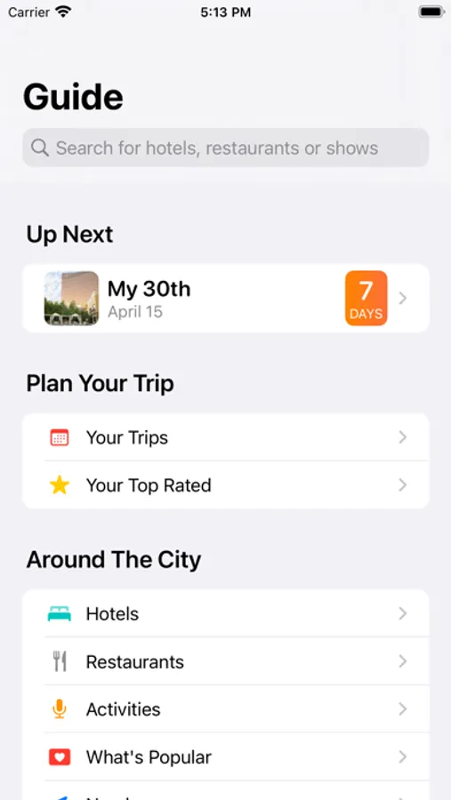 - An extensive set of widgets for recent news, photos, notable places and trip details like a countdown