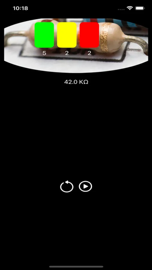 You ca swipe on colored bands on resistor, and You will see colors changing and the final value in Ohm will be displayed.