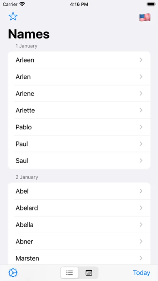 - Get local notifications on a favorites name day.