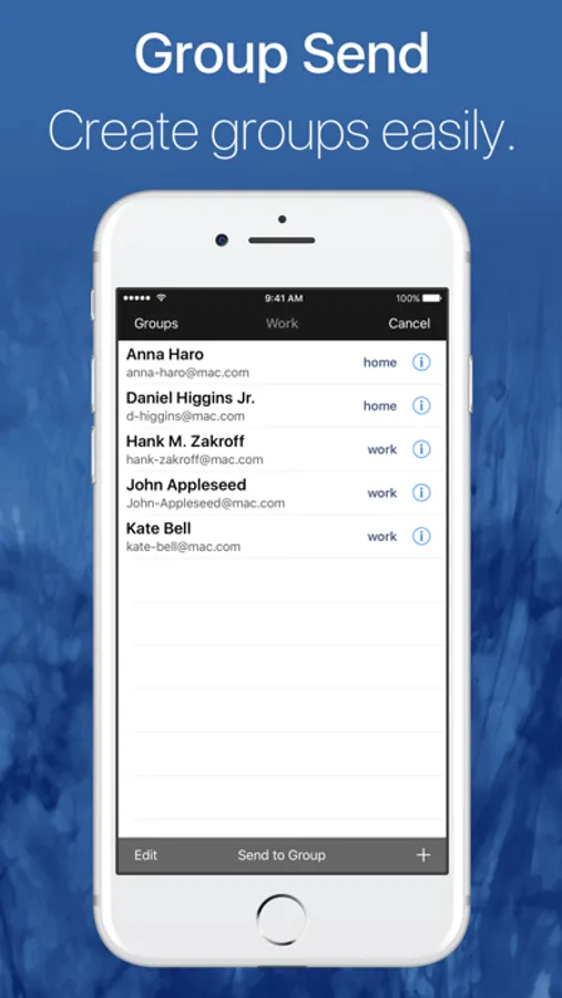 Find yourself writing to the same people or groups of people over and over again? Make your shortcuts even shorter by adding them to Maildash’s “Favorites” screen. This convenient option works like the iPhone’s phone number “Favorites”. Simply choose an address and a message, and Maildash will do the rest. Add email addresses and phone numbers to Maildash’s Favorites from: the iOS Address Book; keyboard; or by pasting multiple addresses or phone numbers into the Favorites screen.