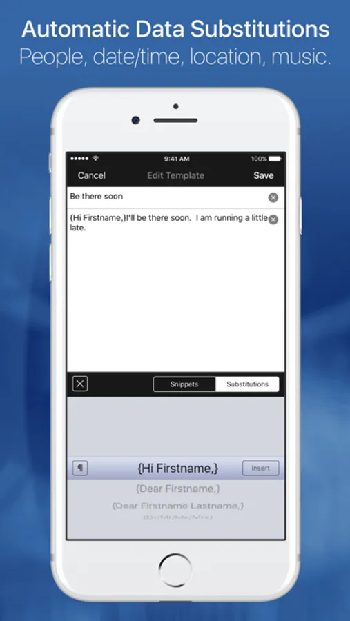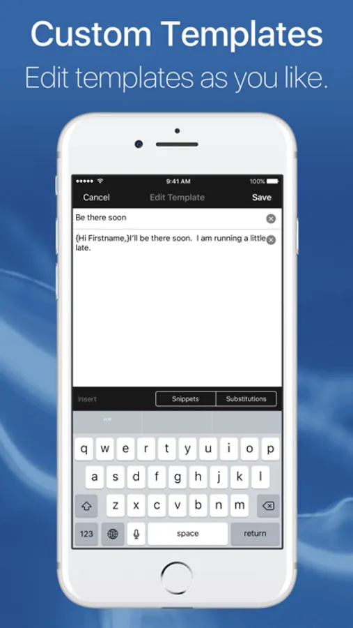 For example, to tell your friend John Doe that you're running late, choose the “Be there soon” template, and tap the Send button. What gets sent is: “Hi John. I’ll be there soon. I am running a little late.”