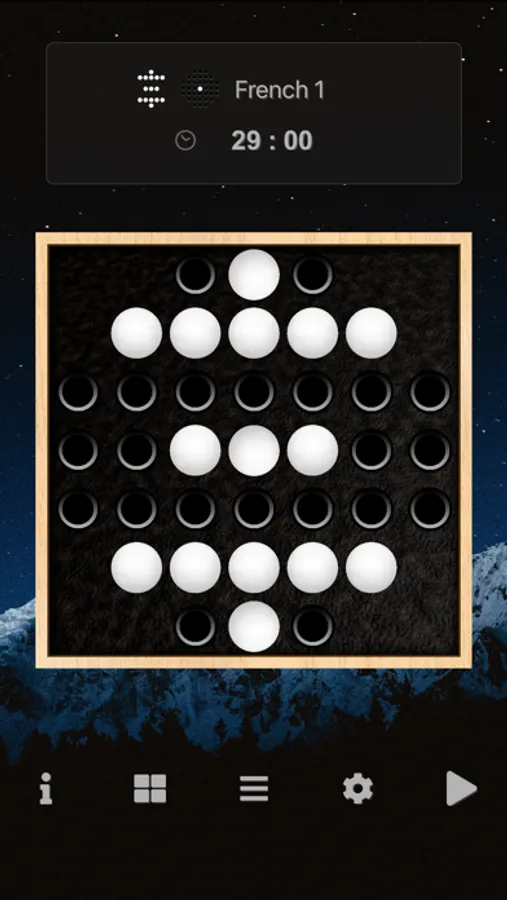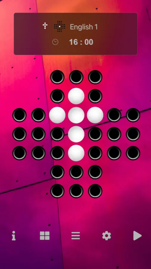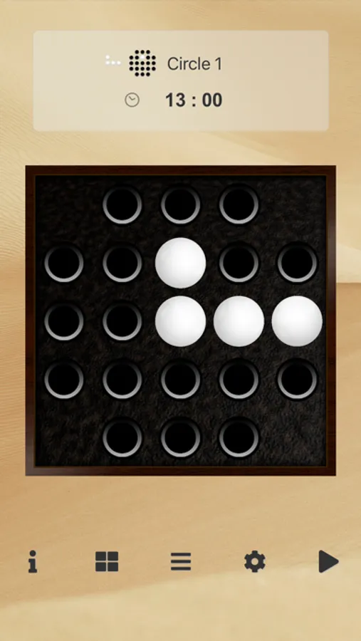 This is a game for those who cherish a challenge, because these puzzles are not easy. One ball hops over the other to remove it from the board. Easy enough. Do that until there is only one ball left in a specific location. Done. But don't you expect to be able to solve each and every puzzle in an afternoon. Some of these configurations are very difficult to solve. The difficulty of a puzzle depends on the kind of board it uses and of course the initial constellation of its game pieces. But that's not all. In this game we play against the clock. So there is that.
