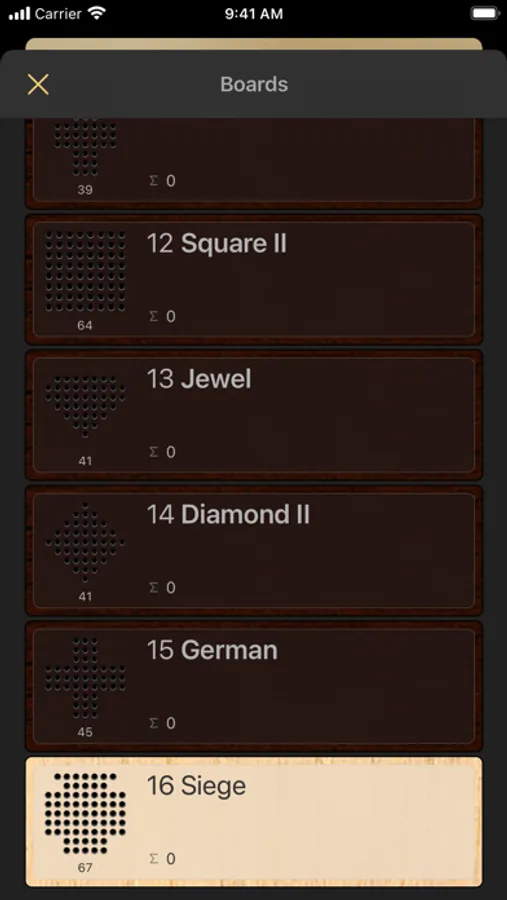 Players can switch boards and all of them hold their own secrets. Switching boards is encouraged and great exercise for getting better. Each board has a set of 15 puzzles in ascending difficulty. Each board's first configuration has already been unlocked. The rest of them have to be unlocked by solving each preceding puzzle with a score of 4 stars minimally.