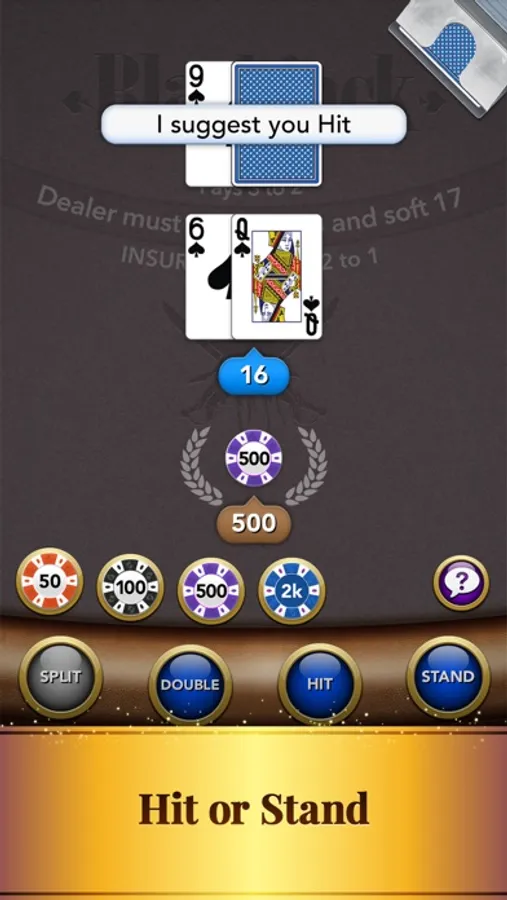 There’s more to this Blackjack app than just Hit or Stand. Just like a real casino, you have the option to split, double down, and even take insurance!