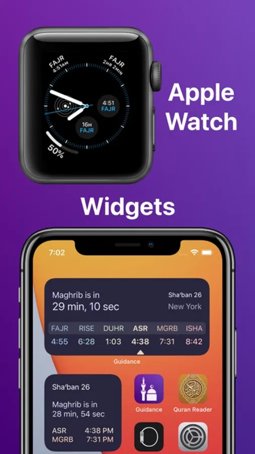 With the convenient Widgets and Apple Watch complications, you will always be up to date on the current prayer times.