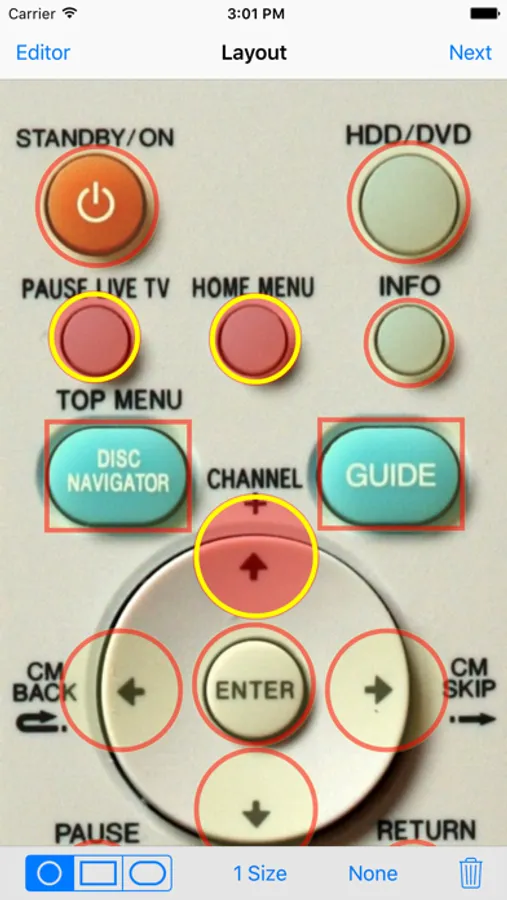 2. In iRedTouch choose the very photo as the touchable area of your new remote