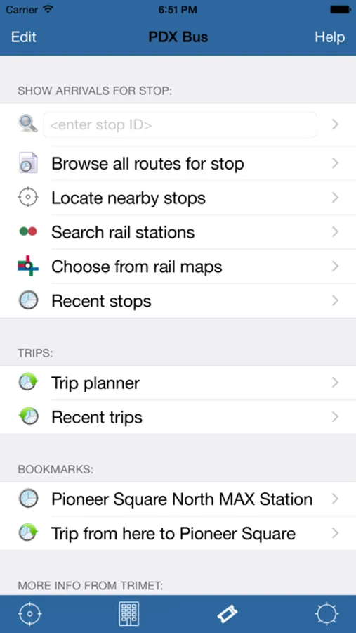 This app uses the Internet to quickly access TriMet's live tracking data to display arrival times perfectly formatted for the iPhone. It allows you to bookmark frequently used stops, displays recently accessed stops, and gives details for arrivals which are en-route.