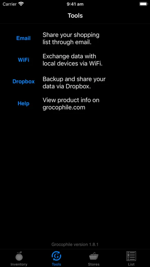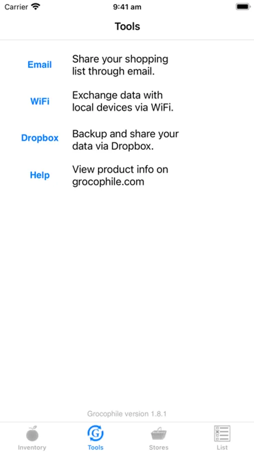 Share your shopping list with others via email and share all of your customized data with other Grocophile-enabled devices via WiFi or through a shared Dropbox account. Multiple people can share the work of creating lists and doing the shopping; just transfer your shopping data from one iPhone or iPod Touch to another.